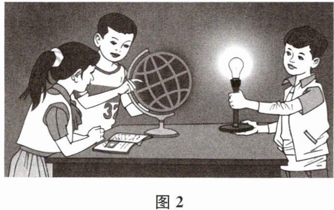 6. 结合图2“演示地球的自转”的实验,关于演示过程和得出的结论错误的是(