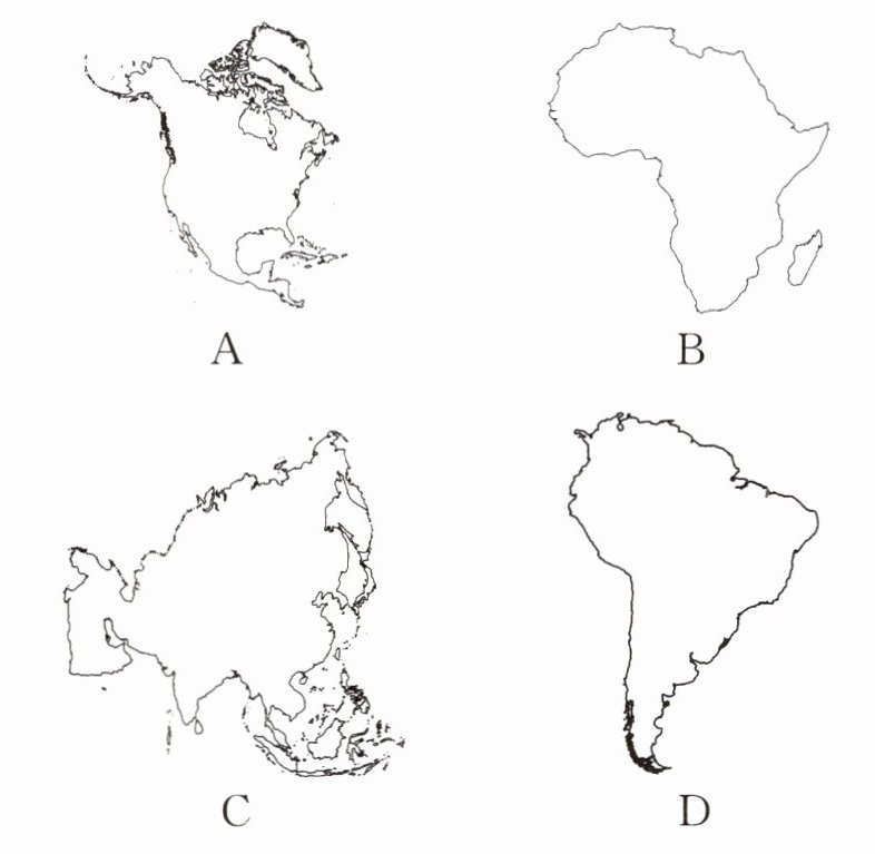 4. 下列图片中,大洲的主体部分既位于北半球又位于西半球的是(