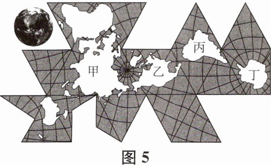 “戴马克松地图”是第一张世界视像图,该图在一个平面上向人类展示了无明显变形的各个大陆。读图 5,完成 9~12 题。
