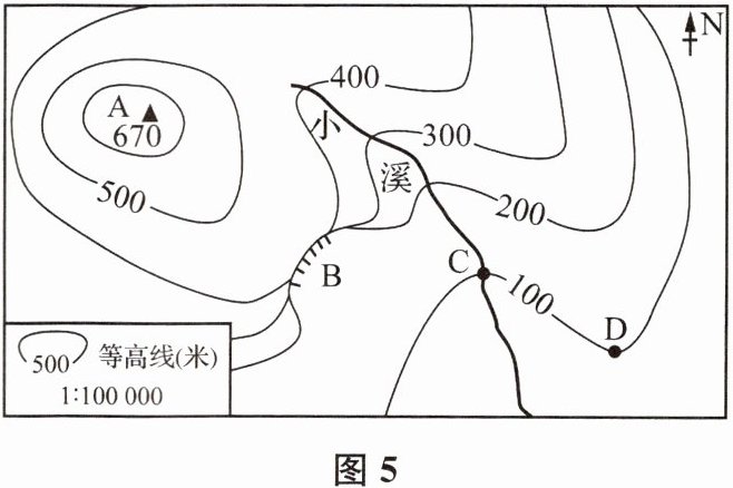 8. 为培养学生的地理实践能力,某校地理教师组织地理社团学生进行野外考察。读图5“某地区等高线地形图”,完成下列问题。