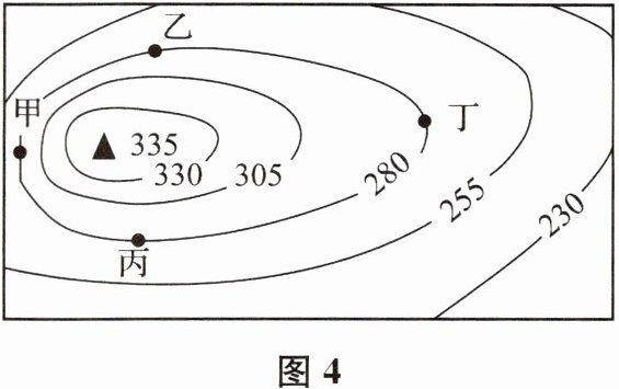 7. 图4是“某地等高线地形图(单位:米)”,说法正确的是(