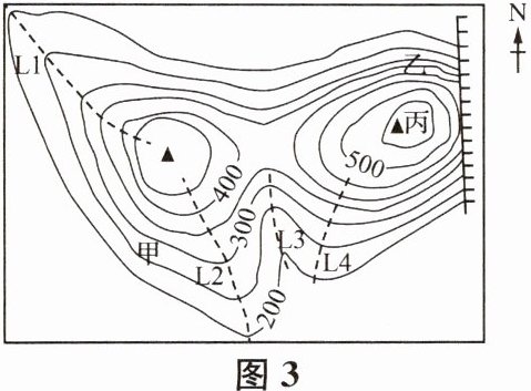 图3为“某地等高线地形图(单位:米)”。读图完成4~6题。