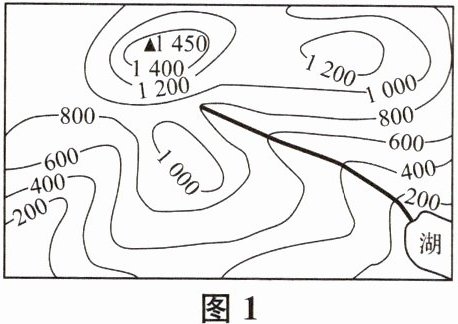 读图1“某地区等高线示意图(单位:米)”,完成1~2题。