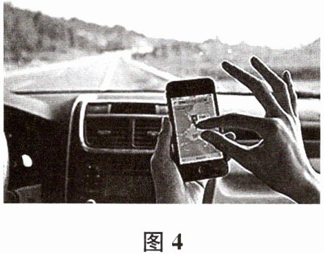 (7)我们在使用北斗卫星导航系统进行导航时(见图4),想要更详细地了解某个地点及其附近情况,需要用手指滑动屏幕,______