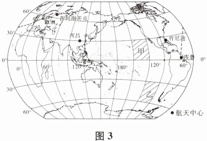 (填“大于”“等于”或“小于”)乙。(4)四个航天中心中,时间最早的是西昌航天中心,最晚的是肯尼迪航天中心,这种地理现象的产生与地球的______