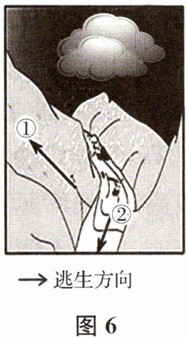 (6) 图6中,山区泥石流发生时,①②两个逃生方向正确的是