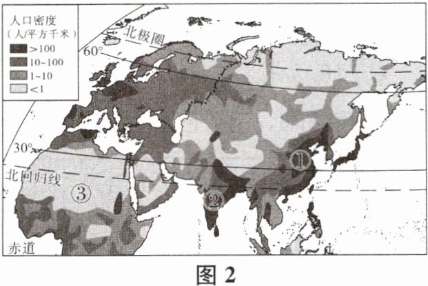 图2为“世界部分地区人口分布图”。读图完成4~5题。