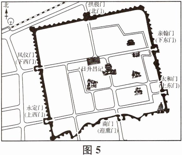 材料二 图5为“平遥古城示意图”,图6为“摄影大展照片”。