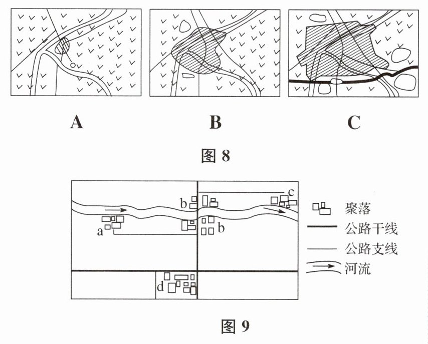 。(至少答出两点)(5)图 9 的四个聚落中,比较有可能发展成城市的是