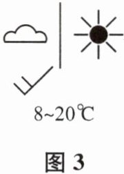 13. 小明和同学们约好明天去春游,可天气怎样呢?小明说他刚看过电视,于是在黑板上画了几个图形后说:“这就是明天的天气情况。”图3示意小明画的图,请你说出明天的天气状况。