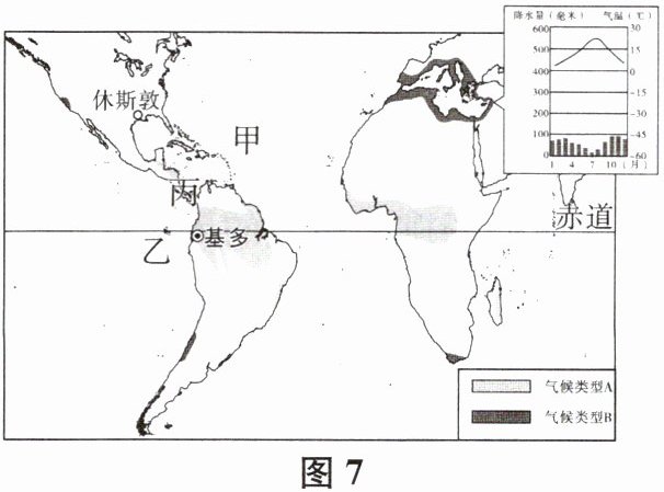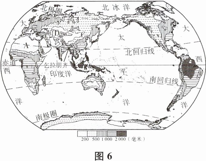 11. 读“世界年降水量分布图”(见图 6),完成下列问题。(7 分)