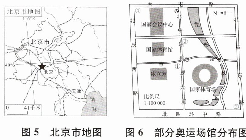 (填图号)的比例尺小。(2)国家会议中心作为媒体转播的中心,它位于国家体育馆的