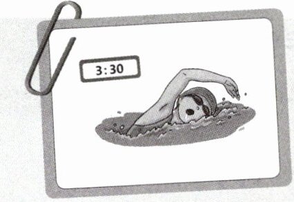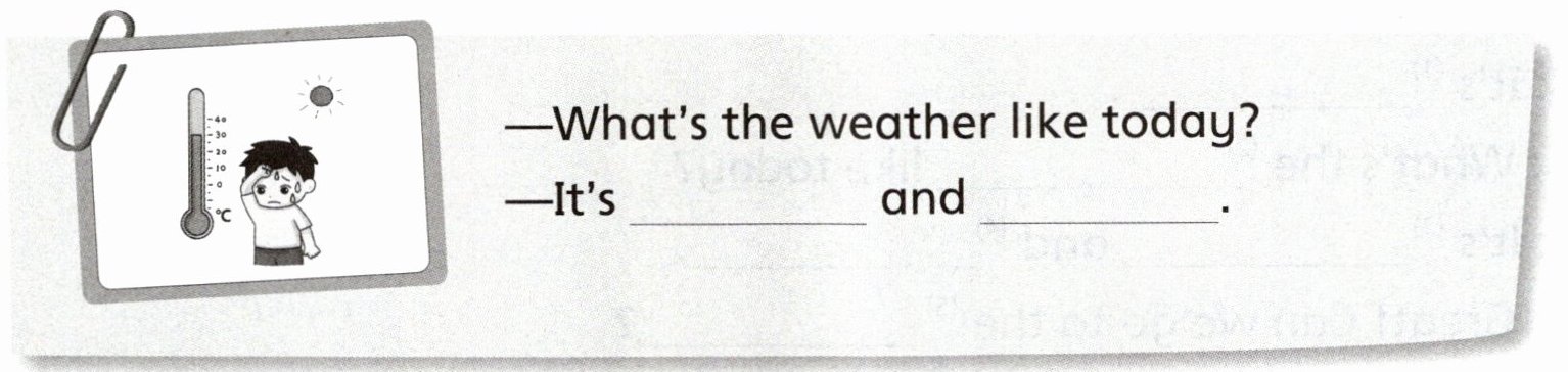 1. sunny, hot 2. eyes, legs 3. time, thirty, swimming