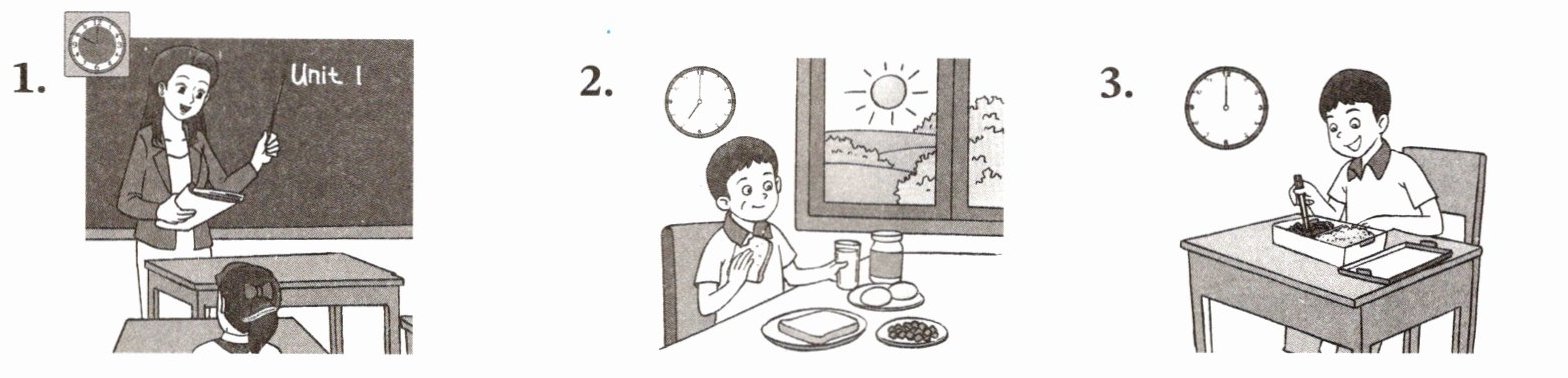 B. —I have lunch at twelve. I have rice and vegetables (米饭和蔬菜) for lunch.