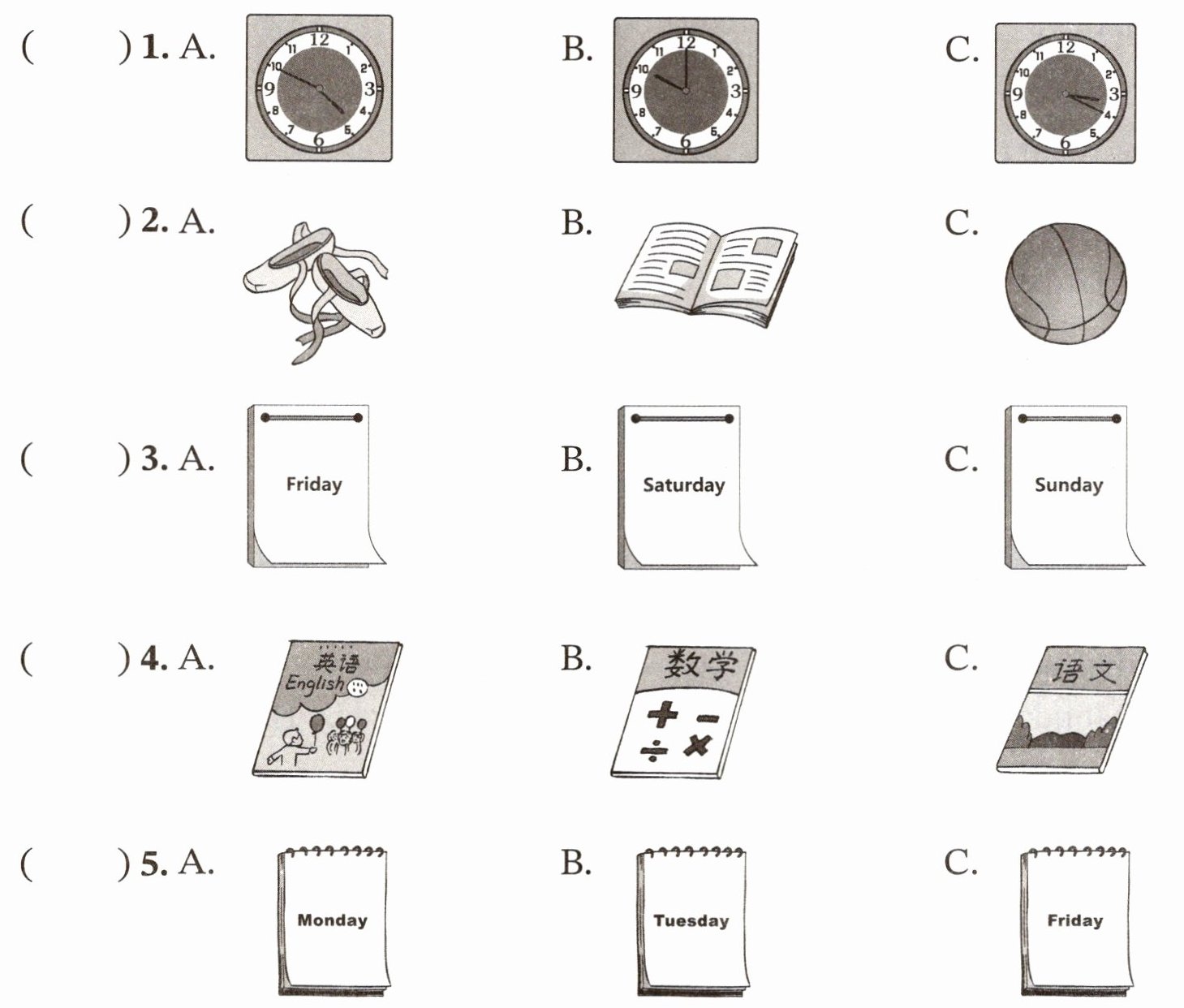 一、根据所听内容,选出相应的图片,听两遍。