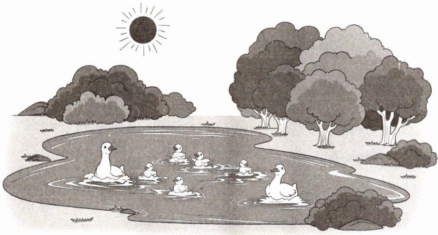 )3. How many ducks does Ada see in the park? A. Five. B. Six. C. Seven.