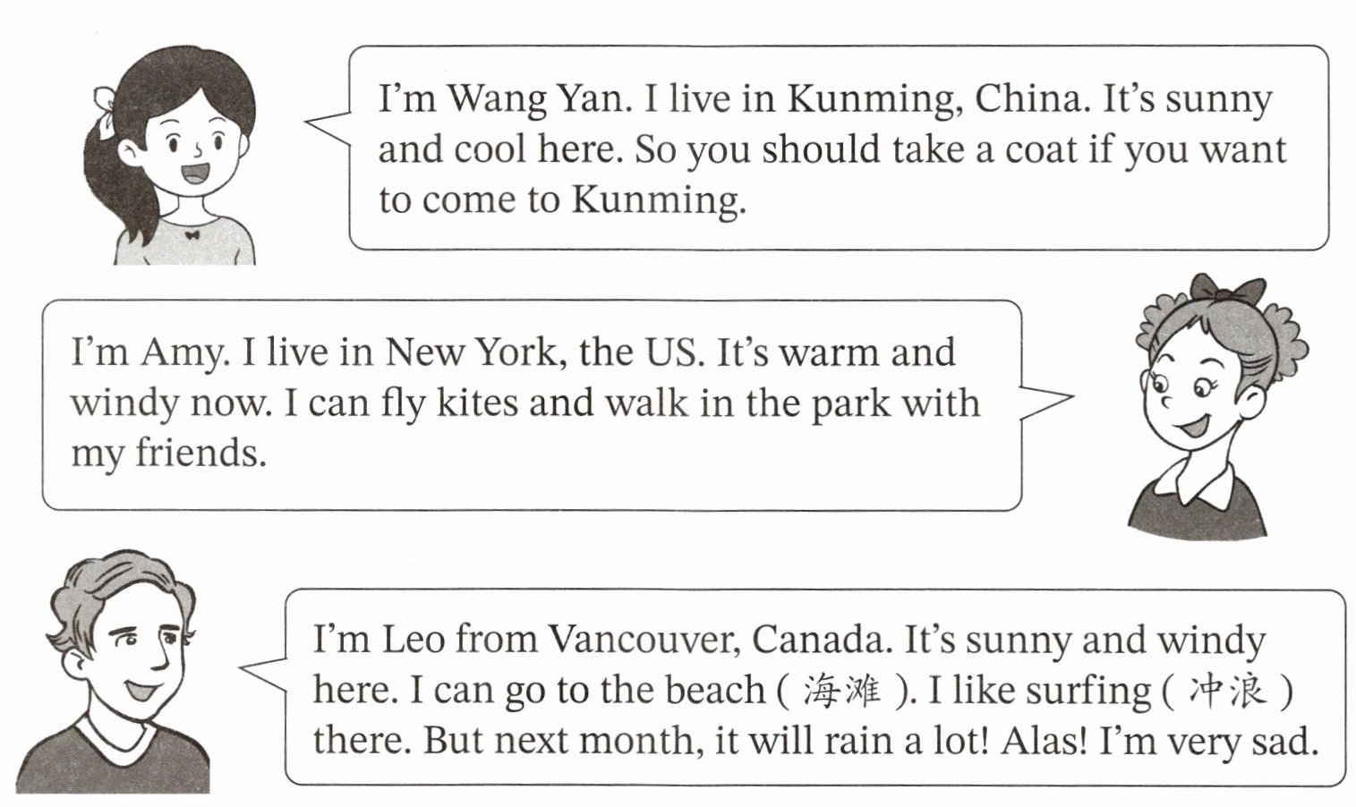 )4. It will be ______ in Vancouver next month. A. sunny B. rainy C. windy