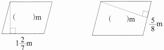 5. 下面两个平行四边形的面积都是$1m^{2}$,请根据底的长度分别写出它们高的长度。