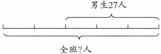 (1)男生有27人,男生人数占全班人数的$\frac{3}{5}$,全班有多少人?解:设全班有x人。$\frac{3}{5}x=27$ $x=45$
