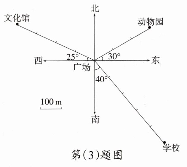 B.文化馆在广场西偏北$25^{\circ}方向400m$处