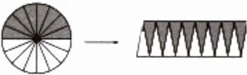 (1)把一个圆平均分成16份,拼成一个近似的长方形[参看第1题中第(1)题图]。这个转化过程中(
