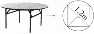 (2)一张可折叠的圆桌,其桌面是直径为1.2m的圆,折叠后桌面成了正方形。折叠后桌面的面积是多少平方米?(得数保留两位小数)