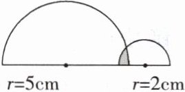 4. 把半径为5cm和半径为2cm的两张半圆形纸片放在桌面上(如下图),其覆盖桌面的面积是$43.92cm^2。$图中阴影部分的面积是多少?