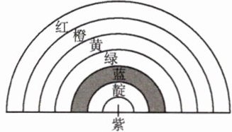 芳芳在手抄报上画了一个美丽的彩虹(如图),彩虹各种颜色的弧之间的宽都是2cm(即紫色半圆的直径是4cm)。