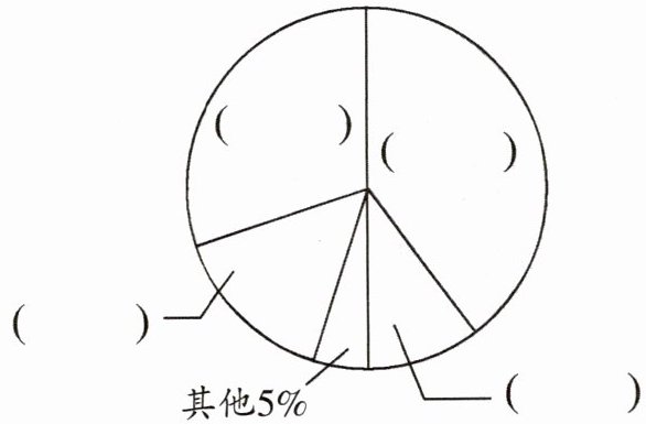 2. 李华家上个月的支出情况如下:伙食费占40%;水、电、煤气和电话费占15%;教育支出占10%;还购房贷款占30%;其他占5%。在下图中表示出李华家上个月的支出情况。