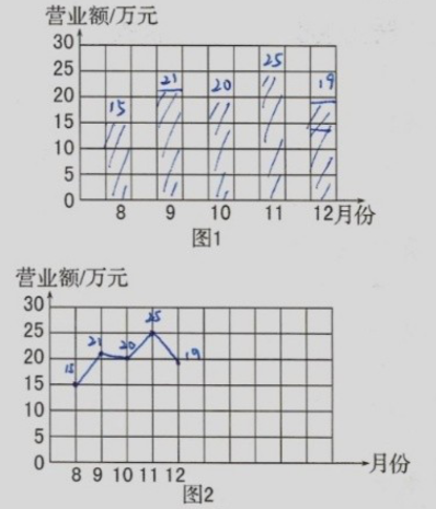 )统计图。请在图1中绘制。(2)要想了解超市这几个月营业额的变化情况,应绘制(