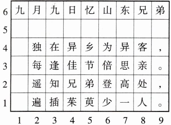 3. 先读古诗,再用数对知识填空。