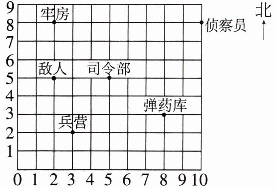 (2)如果图中每格的距离代表50m,敌人到司令部需向(