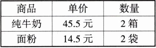(2)乐乐周末跟着妈妈去超市购物,购物清单如下表。请你帮乐乐算一算,这次购物一共用去多少元?