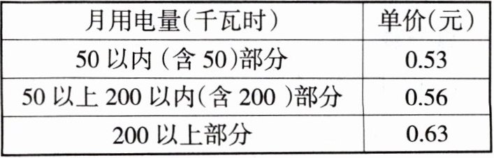 (3)某市自$7月1$日起实行阶梯电价,收费标准如下表。夏宇家$7月份的用电量为110$千瓦时,他家这个月的电费是多少元?
