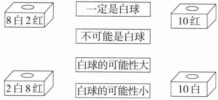 4. 从下面的箱子里分别摸出一个球,结果是什么?(连一连)