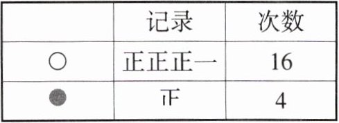 1. 一个不透明的袋子里装有一些球(除颜色外完全相同),下表是从袋子里摸20次的结果(每次摸出一个球再放回去并摇匀)。