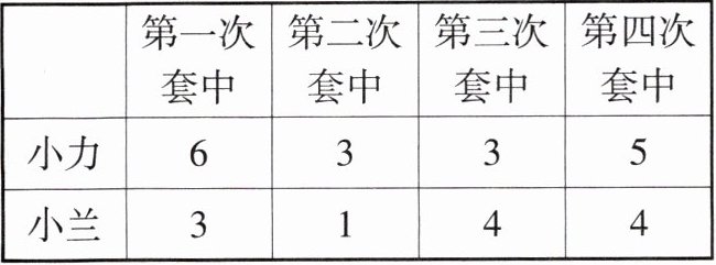 5. 小兰和小力比赛套圈。每人每次套10个圈,前四次的比赛情况如下表: