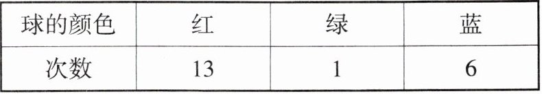 (9)在一个不透明的袋子里装有一些球(除颜色外完全相同),下表是小刚从袋子里摸球$20$次的结果(每次摸出$1$个球后再放回袋子里摇匀)。