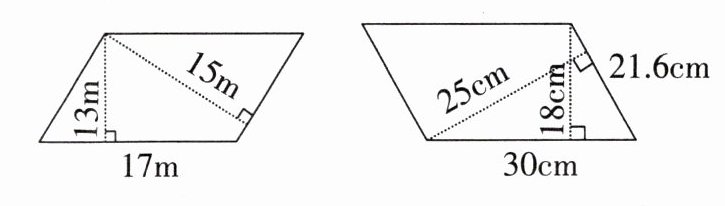 (1)一个花坛的形状是平行四边形,它的面积是 $ 48m^{2} $,高是 $ 6m $,这个花坛的底是多少米?