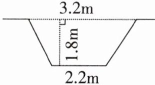 (1)一条新挖的渠道,横截面是梯形(如图),渠道口宽3.2m,渠底宽2.2m,渠深1.8m。它的横截面的面积是多少平方米?