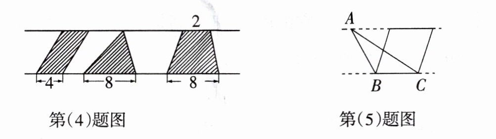 )(5)如图中夹在两条平行线间的三角形$ABC$的面积是平行四边形面积的一半。(