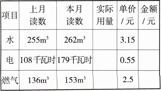 6. 下面是小华家水、电、燃气的缴费单,算一算各需缴多少钱?妈妈带100元钱够吗?