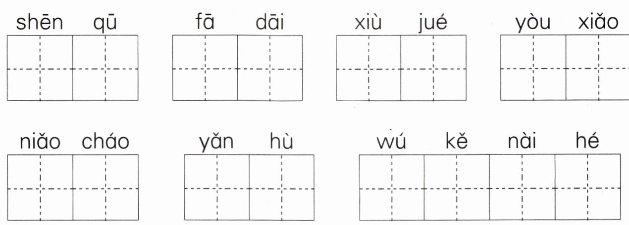 1. 风猛烈地摇$\underline{撼}$着路旁的白桦树。 (