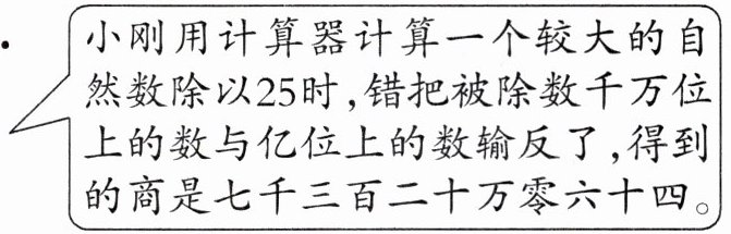 5. 小刚用计算器计算一个较大的自然数除以25时,错把被除数千万位上的数与亿位上的数输反了,得到的商是七千三百二十万零六十四。