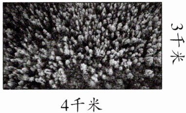 4. 一架直升机在一片长方形树林(如图)上空喷洒药水。这片树林的面积是多少平方千米?合多少公顷?