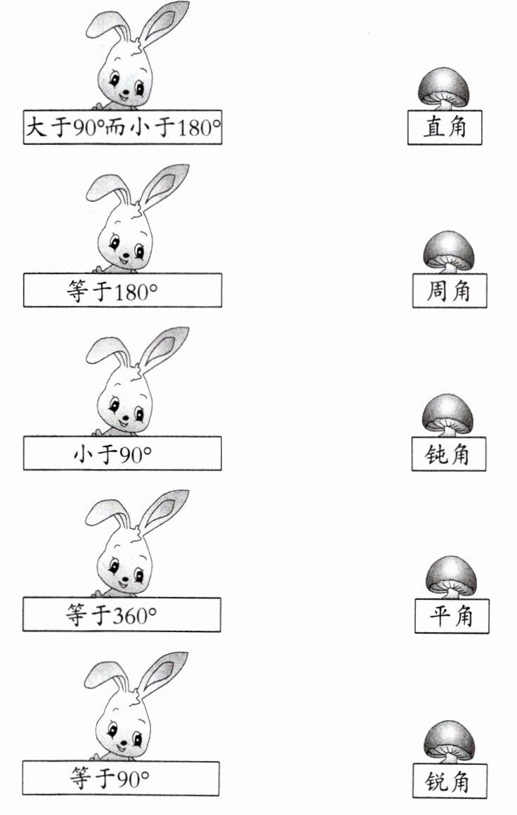 从上到下依次:钝角;平角;锐角;周角;直角。