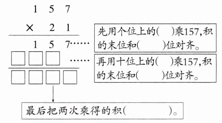 先用个位上的$1$乘$157$,积的末位和个位对齐。