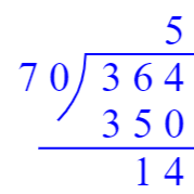 $364÷70=$5……14