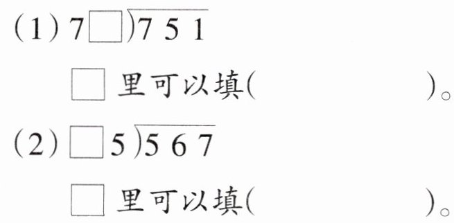 )时,商是一位数;当$□$里的数分别是( 4、5、6、7、8、9