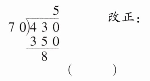 × 正确答案:230÷40=5……30 × 正确答案:430÷70=6……10